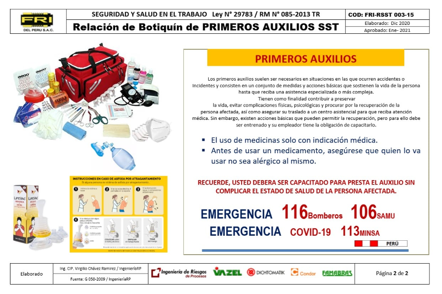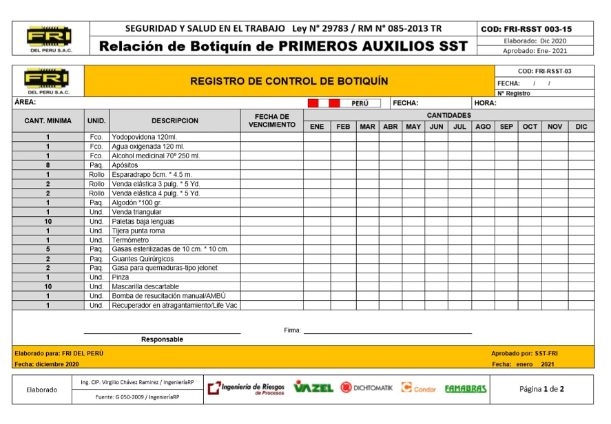 Descargue la relación de BOTIQUIN de EMERGENCIA nivel básico para que realice las modificaciones que considere de acuerdo a sus necesidades.